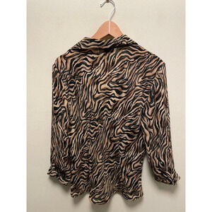 Vintage Womens Top Size Large Animal Print Ruffle Tie Neck Babydoll Mob Wife Y2K