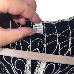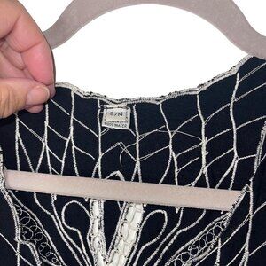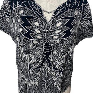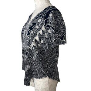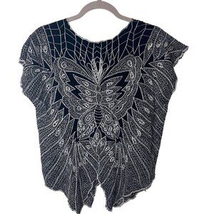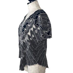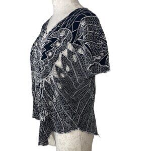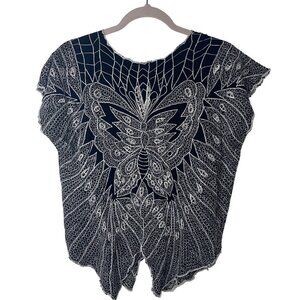 Vintage Womens Top Size Medium Black Embroidered Lace Butterfly V Neck