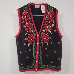 Vintage Womens Ugly Christmas Sweater Vest Size Medium Poinsetta