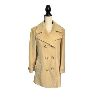 Vintage Womens Unbranded Wool Long Peacoat Camel Union Made Gold Stitching SZ 12