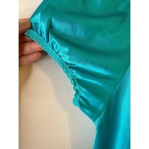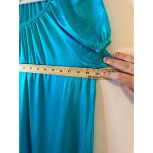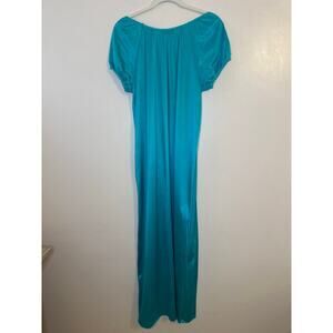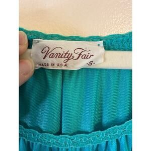Vintage Womens Vanity Fair Turquoise Maxi Length Nylon Romantic Night Gown Small