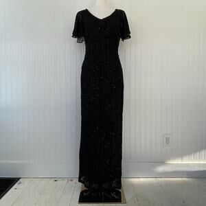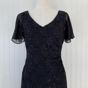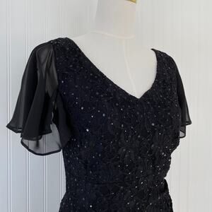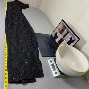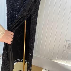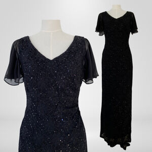 Vintage Womens Whimsigoth Lace Maxi Dress Size 5 Sequins Empire Waist 90s Glam