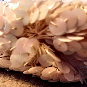 Vintage Women's White Iridescent Sequin Evening Bag/Clutch ~ Gold Tone Closure