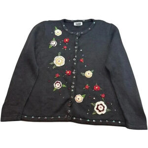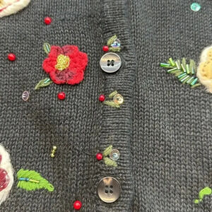 Vintage Women's White Stag Embroidered Floral Christmas Holiday Cardigan XL