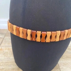 Vintage Womens Wooden Size Large Belt Boho Folksy 70s 80s Western. This belt is pre-owned. Great condition. No Flaws. No size on the belt, but fits like a large. See measurements for details. Measurements: 37.5 inch full length 1 inch width