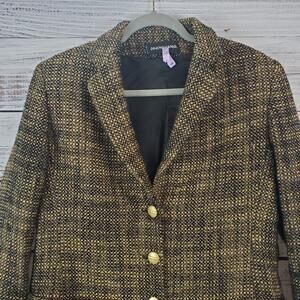 Vintage Womens Wool Blend Tweed Blazer Sz 10 Brown Black with Gold Shimmer Italy
