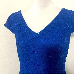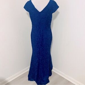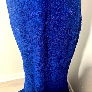 Vintage Women’s XL Elegant V Neck Mermaid Royal Blue Long Lace Prom, Gown Dress