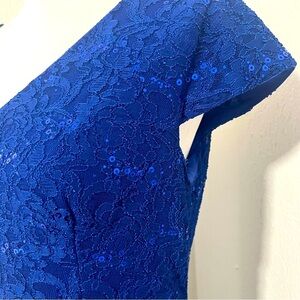Vintage Women’s XL Elegant V Neck Mermaid Royal Blue Long Lace Prom, Gown Dress