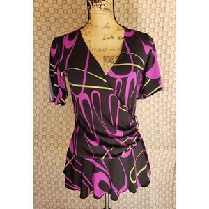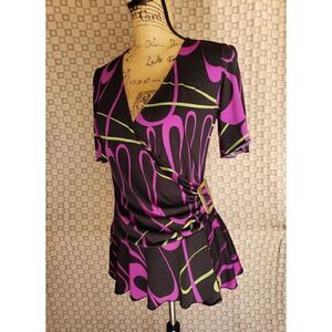 Vintage Women's Y2K Blouse V Neck Side Buckle Wrap Style Top Medium Glam NWOT