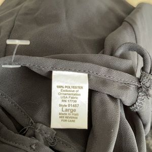 Vintage black body, upper crochet lace slip dress, size L, sheer, adjustable straps, 4 faux pearl button closure in back, brand label removed, made in Haiti, see photo’s for detailing, excellent condition,