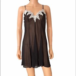 Vintage Women’s black embroidered slip dress pearl buttons
