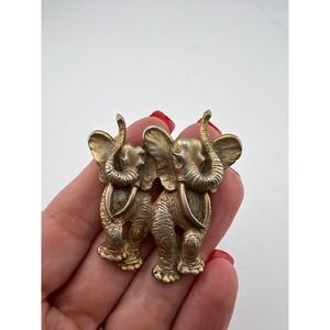 Vintage Women's jewelry Pair of Elephant Trunk Up Pewter Pin Brooch Collectible