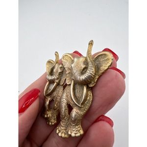 Vintage Women's jewelry Pair of Elephant Trunk Up Pewter Pin Brooch Collectible.