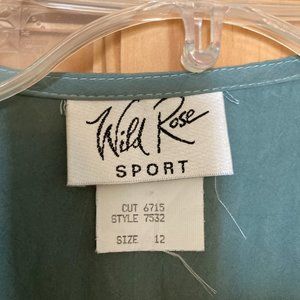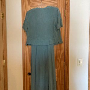 Wild Rose vintage dress with cardigan. 100% Rayon, Dry clean only. Tag lists it as a size 12, fits more like a size 8-10. VERY Slenderizing, sheeny/soft material