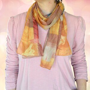 Vintage Women's y2k Pastel Earth Tone Floral Spring Summer Sheer Scarf
