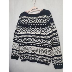 Vintage Women's Eddie Bauer Wool Angora Fair Isle Black and White Sweater