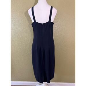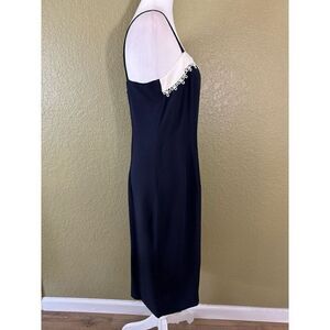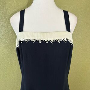Vintage Women's Size 7/8 Square Neck Lace Trim Midi Dress Navy Blue White Summer