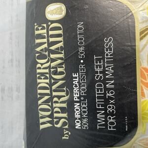 Vintage Wondercale Springmaid 2pc Sheet Set French Flowers Yellow Flat Fitted