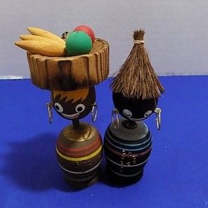 Vintage Wood African Black Natives Island Caribbean Salt & Pepper Shakers
