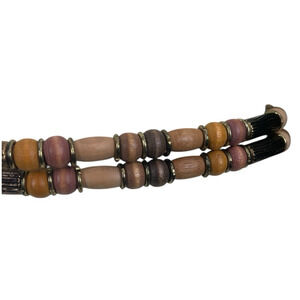 Vintage Wood Beaded Belt Gold Buckle Adjust. Size Small Boho Style Vintage 90s