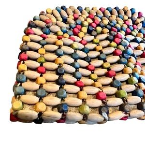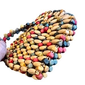 Vintage Wood Beaded Small Belt Bag 1930s 1940s Natural Boho