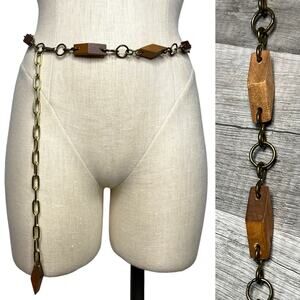 Vintage Wood Beads Chain Belt Boho 31”-41”