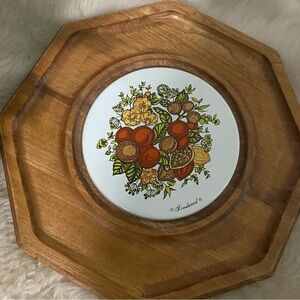 Vintage Wood & Ceramic Floral Octagon Trivet Pot Holder