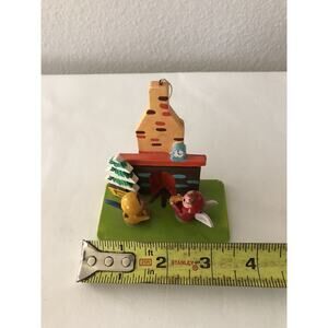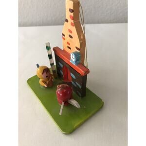 Vintage Wood Christmas Ornament House with Tree and Angels Japan