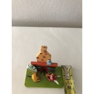 Vintage Christmas Ornament Diorama Wood Japan Angels in good used condition. Measurements are in photos.