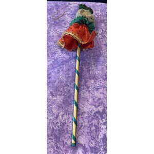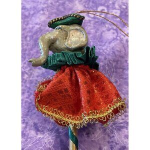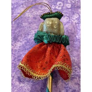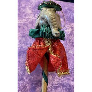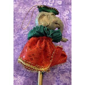 Vintage Wood Elephant Christmas Ornament Hobby Stick Glittery Ruffle‎ Robe Hat