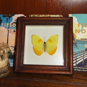 Vintage Wood Framed Orange Sulphur Butterfly oddity curiosity insect bug