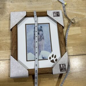 Vintage Wood Framed Wolf Print Paw Matted Cabin Woods Wall Decor 9.5” X 11.5”New