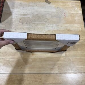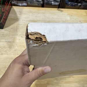 In new condition with imperfections. Scratch on glass ( picture 8) and package is ripped ( picture 9 ).