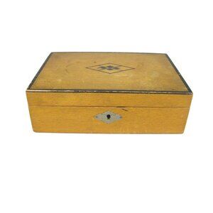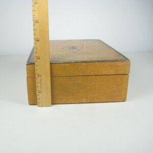 Vintage Wood Geometric Painted Pattern Decorative Box Hinged Lid