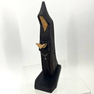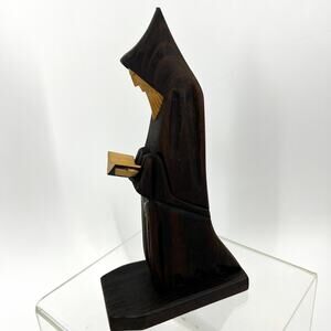 Vintage Wood Hand Carved Religious Monk Priest Friar with Prayer Beads and Bible
