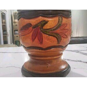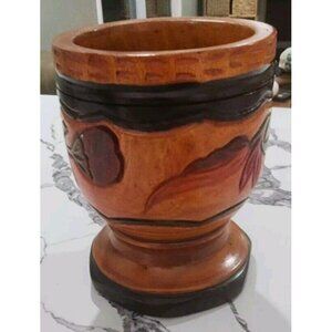 Vintage Wood Hand Turned Carved Floral Three Tone Mortar and Pestle LARGE