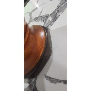 This vintage wood hand turned carved floral mortar and pestle is a must-have for any collector of vintage or antiques. The three-tone wood color adds to its beauty and uniqueness. The piece appears to be an original and has not been signed. It is made of wood and is in excellent condition. The size of this item is HUGE, making it a perfect addition to any collection.