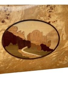 Vintage Wood Inlay Music Box Table Or Jewelry Box with Storage Plays Beautifully.
