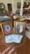 The smaller frame has non-glare glass with a copy of a dressed cat. 5" X 4"