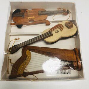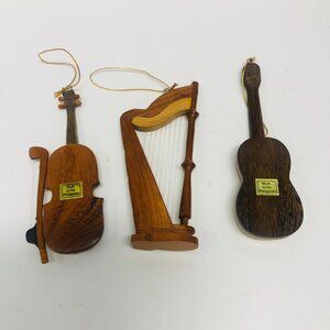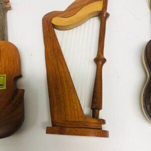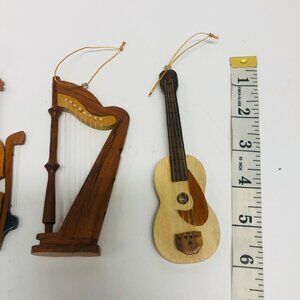 Vintage Wood Musical Christmas Ornaments Crafting Miniatures Violin Harp Guitar