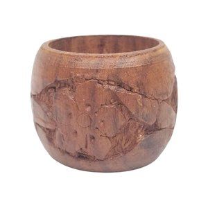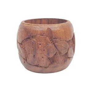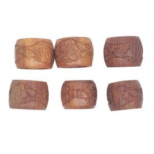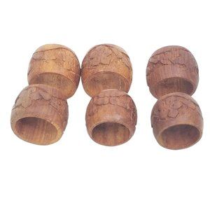 Vintage Wood Napkin Rings Wooden Hand Carved Flowers Leaves India Set Of 6