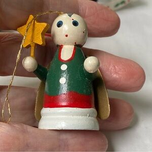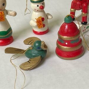 Vintage Wood Ornaments Set of 6 Handpainted Holiday Lot #2