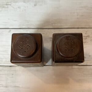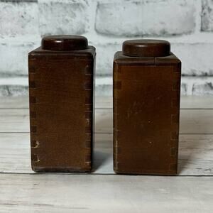 Vintage Wood Pecker Wooden Salt and Pepper Shaker Square Rectangle Painted MCM