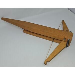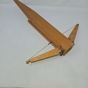 This is a Vintage Solid Wood Toy Ping Pong Ball Crossbow. It was bought at a Ren Fest back in 1985 and is in great condition. This is very well built with quality wood by a master craftsman. It shows ping pong balls or similar sized round projectiles. It is complete and works as intended without any damage or defects. No ball are included but they take standard sized ping pong balls, nothing special required. It is 20 inches long and 16 inches wide and 2 inches thick.