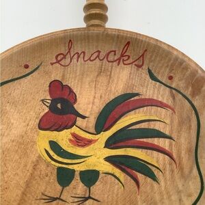 Adorable vintage wood snack dish with hand painted rooster and a handle for hanging. Made in Japan. Pre-owned, vintage condition.