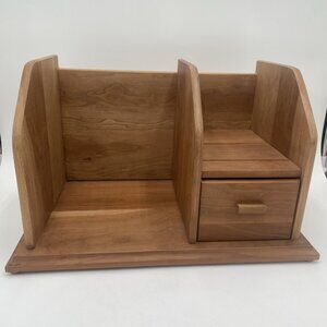 Vintage Wood Rustic Desk Top Organize Drawer Box File Storage Wooden Card
