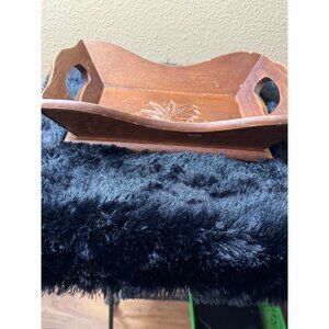 Vintage Wood Serving Tray With Wheat Design & Handles 12" X 9"
