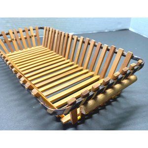 Vintage Wood Slat Bread Basket Rectangular Fruit Tray Fruit Storage 14 Inch