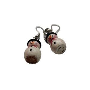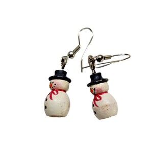 Vintage Wood Snowman Hoop Earrings Christmas Holiday