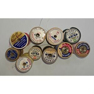 This is a mixed lot of vintage thread spools with two plastic small cases. There are 56 spools which are a mixture of new, partially used, and empty but most of them have at least half the thread remaining. There is thread from JP Coats, TG&Y, Star, Clark's, American and Talon with nearly all of them being Cotton or Polyester. There is a huge mix of colors.